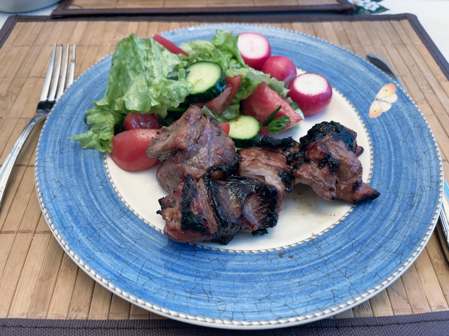 Но вообще шашлык (или кебаб) — это обычное мясное блюдо, которое можно есть хоть каждый выходной или даже чаще, если на то есть желание. Я его готовлю чуть ли не круглый год — и в прошлом мае готовил, если вас так интересует, и даже месяц назад, в декабре. Я понимаю, что мне в частном доме это делать немного легче, но есть электрогрили, например, которые вполне подходят для такой готовки в квартире.