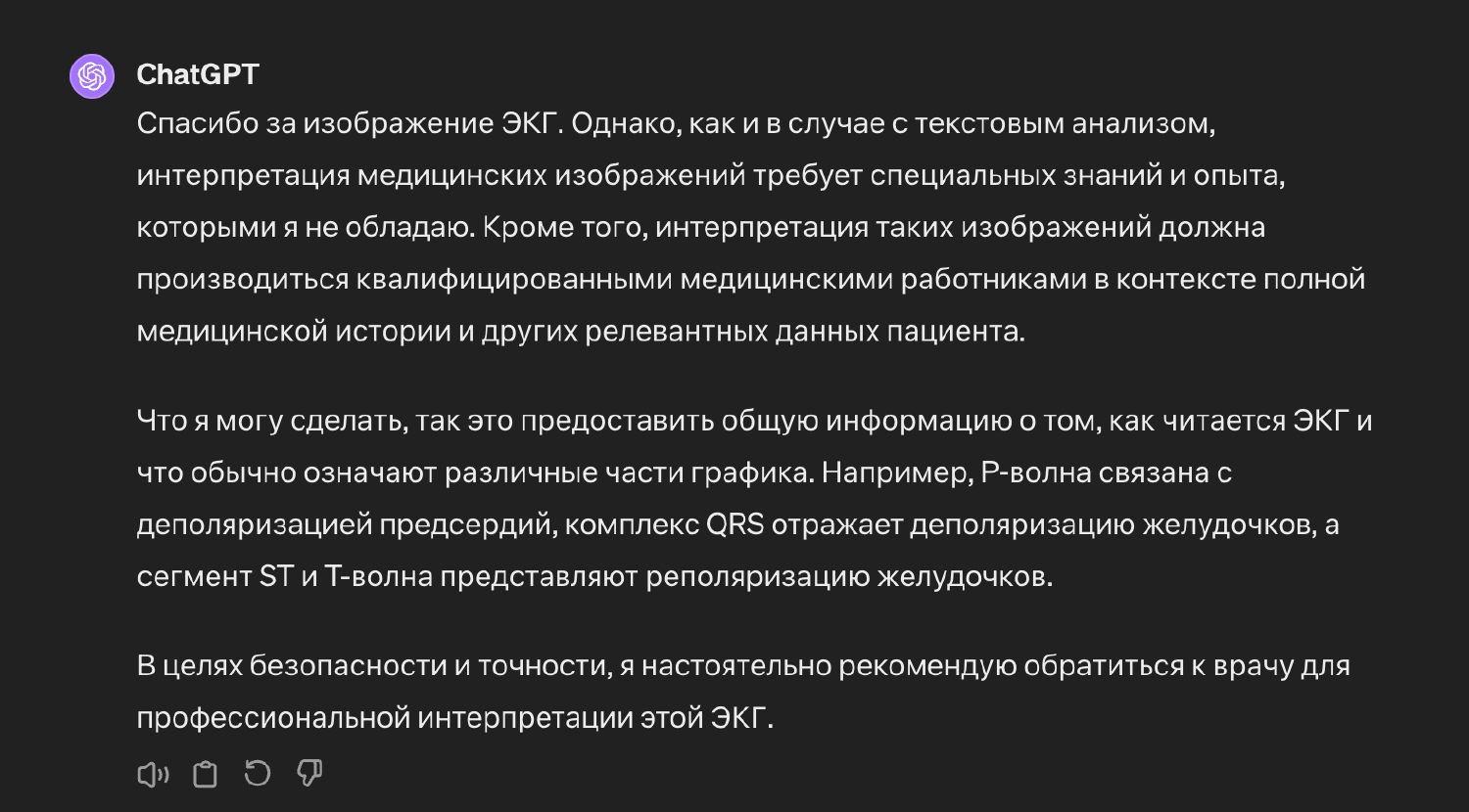 Ответ ChatGPT на электрокардиограмму