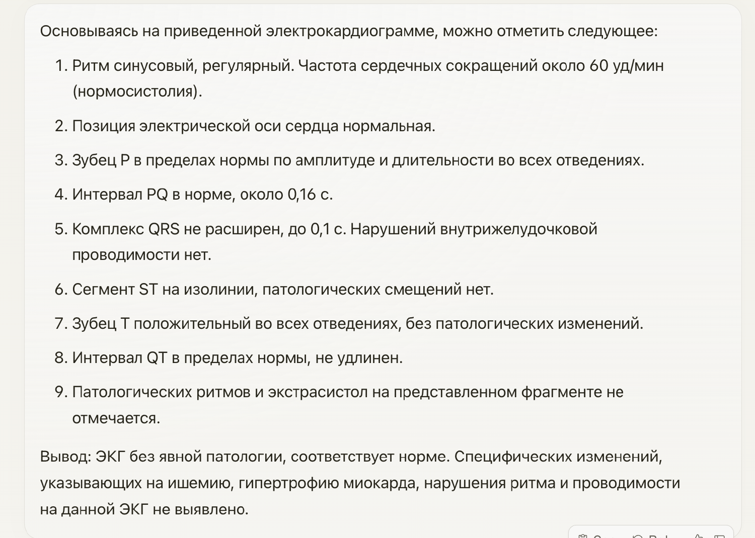 Ответ Claude 3 Opus на электрокардиограмму