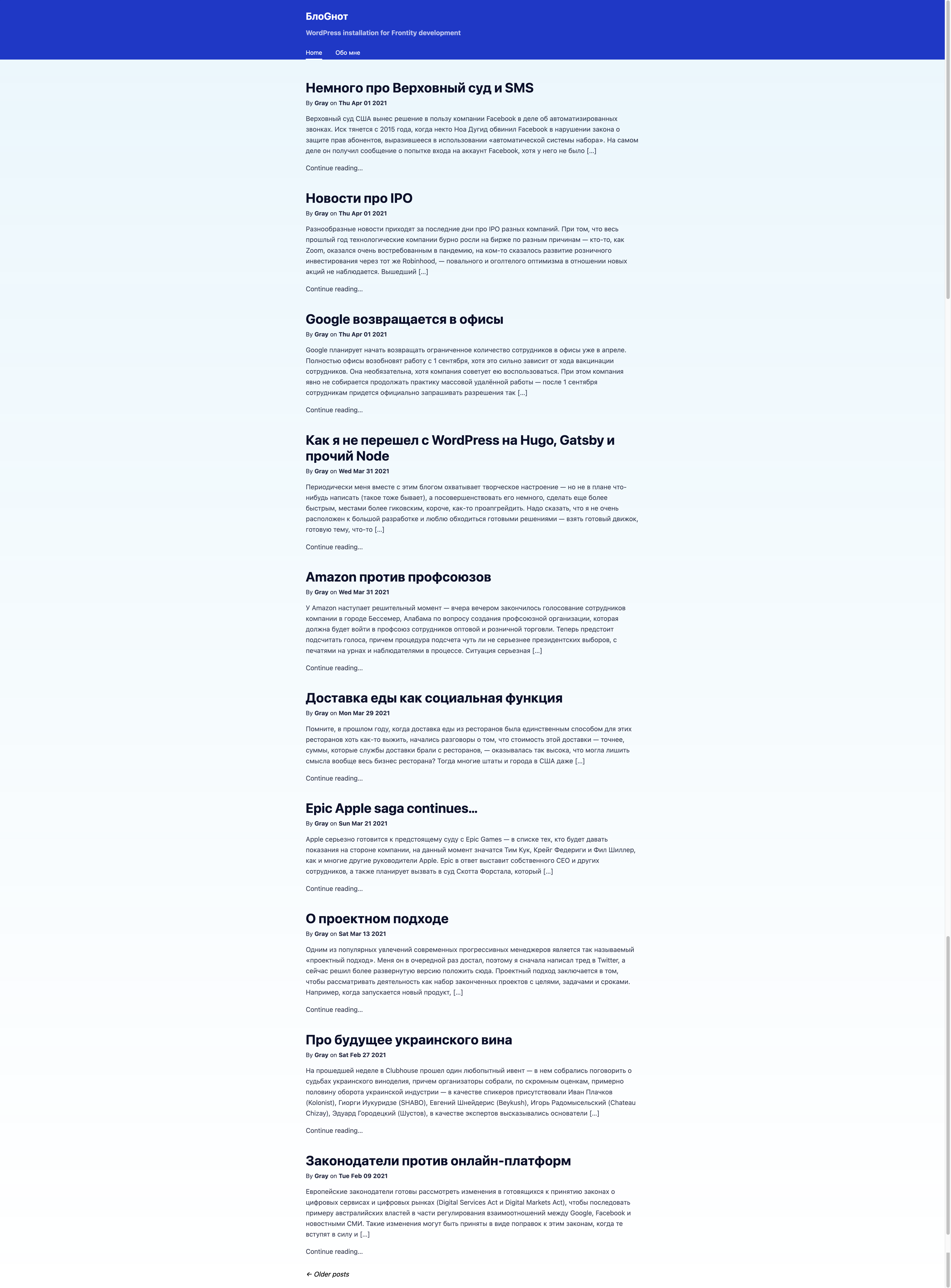 Заинтересовавшимся темой использования Wordpress как основы для быстрого фронтенда на модных фреймворках могу посоветовать симпатичную штучку под названием Frontity. Это полноценный движок, который цепляется к Wordpress через существующий REST-API и строит из полученного контента react-приложение — очень быстрое, легкое и приятное.