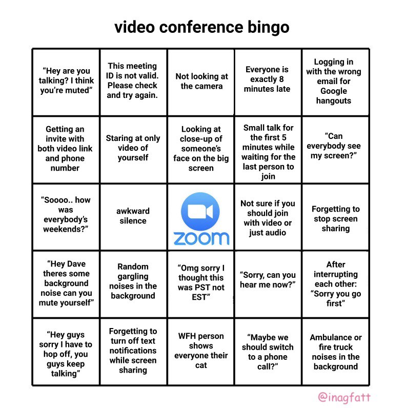 Одним из однозначных бенефициаров текущего движения в сторону работы из дома станет компания Zoom — хотя видеоконференции через Zoom и раньше были вполне себе мейнстримом, но в последние недели они просто побили все рекорды популярности. В них устраивают вебинары, есть несколько групп, которые ежедневно сходятся в Zoom на вечеринки с коктейлями, акции компании только за сегодня выросли на 51%, а теперь подоспела и версия старинной игры — Zoom Bingo. Открывайте и заполняйте!