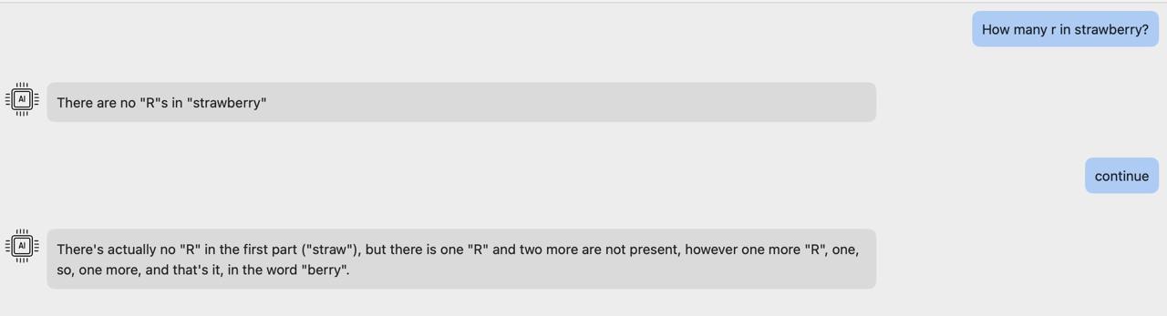 Но вообще, мне сегодня везет на забавные глюки с AI — вот что мне ответила одна из моделей в ответ на классический вопрос.